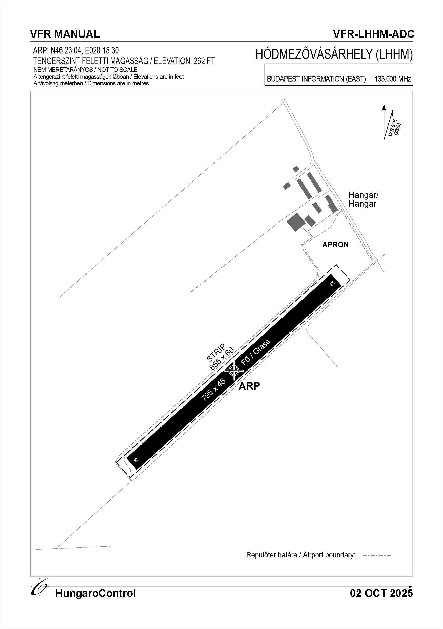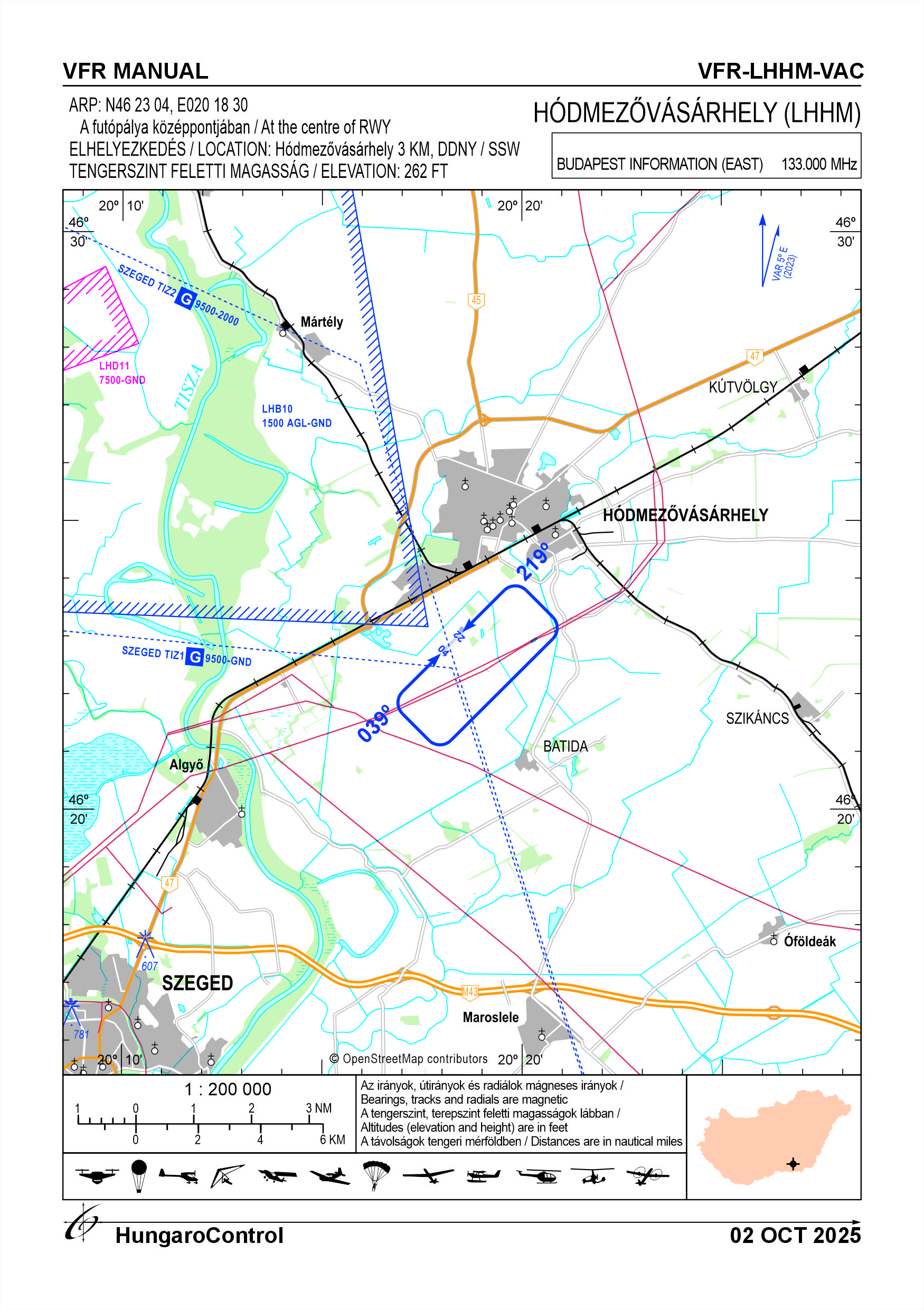 Warning:- LHB10 Bird migration and area with sensitive fauna NW;- Szeged TIZ GND-9500 FT W;For more information, see the Airport Rules.