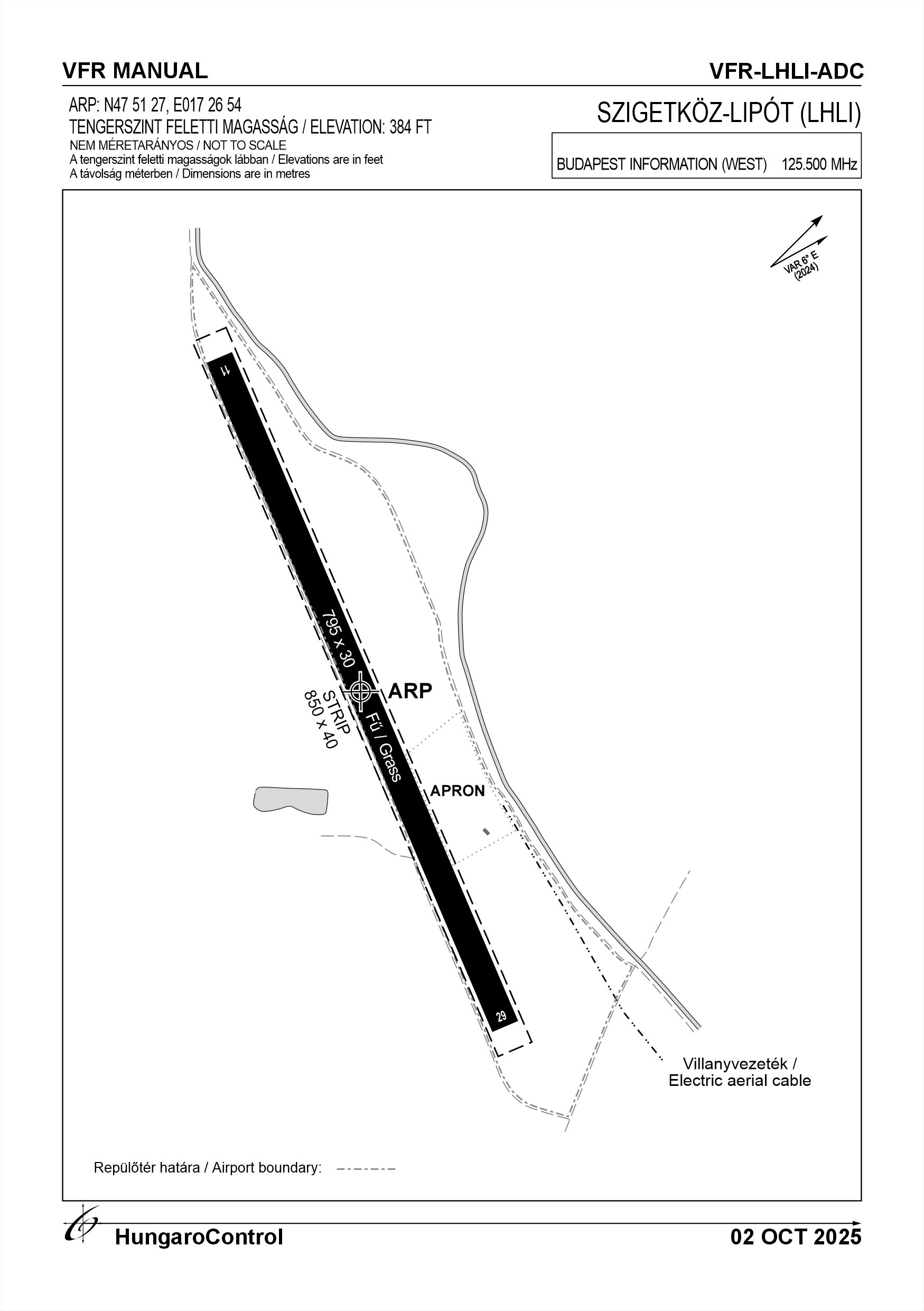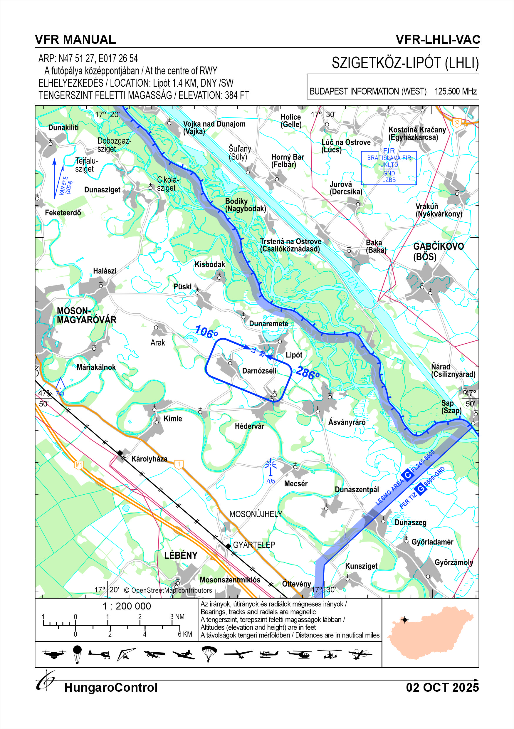 The airport is open to various types of aviation (paragliding (towed and winched), SES, UL, glider, motorised, hot air balloon, parachute, balloon, paraglider, model aircraft, etc.), both separately and in combination, in accordance with local regulations. Local rules on the conduct of individual operations and cooperation between different operators: - The use of the airport and the organisation of operations at the airport are subject to the prior authorisation of the owner or operator, except for aircraft in an emergency situation. - There is no air traffic service at the airport, so access to the airport and take-offs and landings at the airport may be carried out in accordance with the relevant air traffic regulations. - Only one launch site can be set up at the airport at a time. - The operation of a parachute operation at an airport shall be subject to the following activity requirements of the activity, subject to the prior approval of the owner, in accordance with the legislation or with the consent of the owner or the operator, over the working area of the airport, active in active ad hoc airspace under the responsibility of the competent ATS unit, subject to notification and authorisation. - During the time of a parachute jump, other parachutists shall not be allowed to land on the working area of the aerodrome or in the airspace above it activities shall not be conducted. - Conduct aerobatics at the aerodrome in accordance with the requirements applicable to the activity the activity, only with the prior agreement of the owner or the the owner or operator, over the working area of the aerodrome, with the consent of the airspace, subject to the information and authorisation of the competent ATS unit. The airport is close to the state border, so the airport can only be used to enter or leave the airport. For more information, see the Airport Rules.