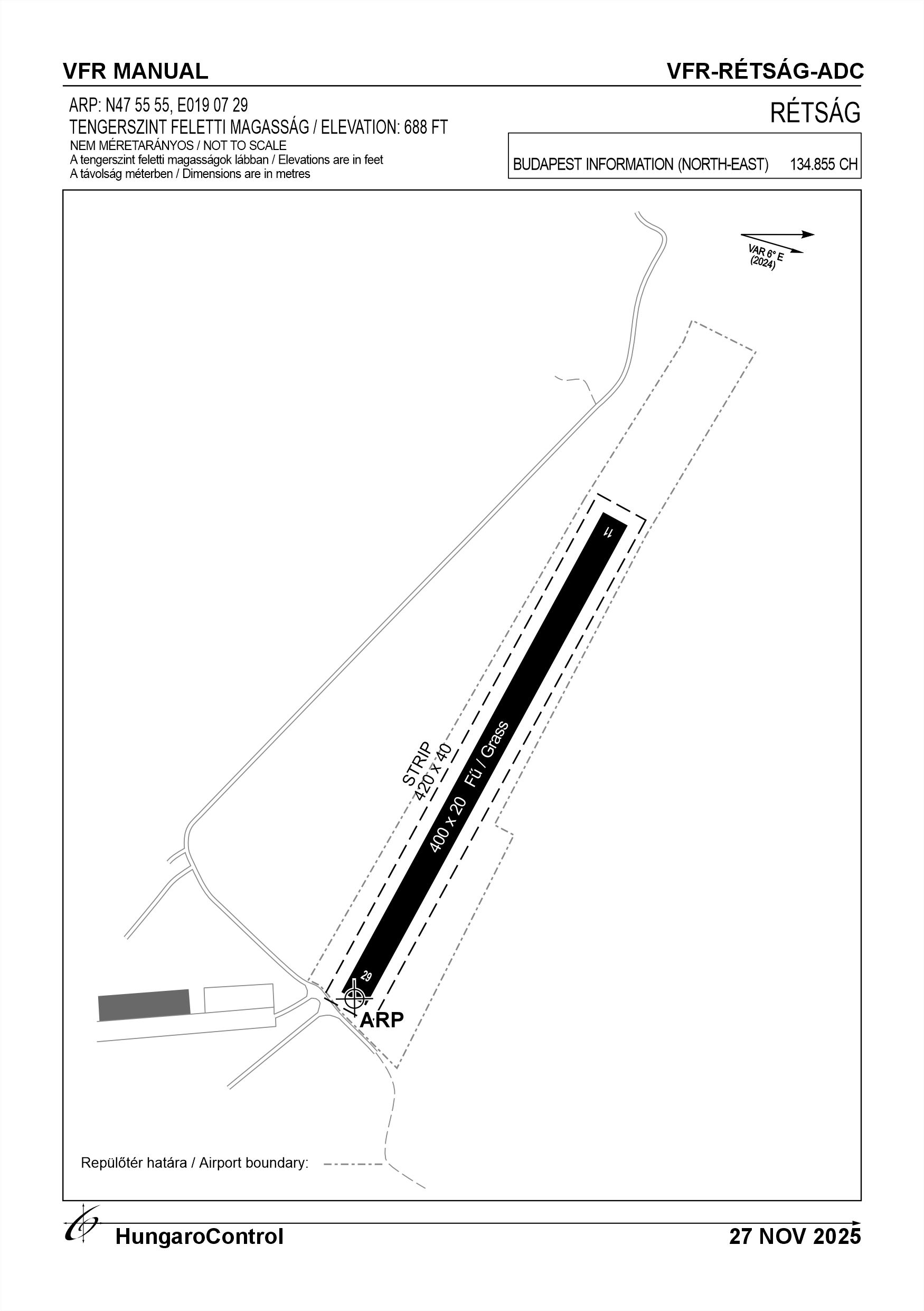Flight Procedures Daily operations are coordinated by the responsible manager or his/her deputy on a daily basis, depending on weather and the flight operation or operations. From the airport, the flight can take off in 11 directions to the left, and in 29 directions to the right. For 29 directions, the first turn must be made immediately upon reaching a safe altitude, as LHB26 restricted airspace cannot be used from the edge of the forest. Traffic circles are at 1700 ft AMSL for powered fixed-wing aircraft. For unpowered aircraft and aircraft not equipped with an engine, at a height of reasonable altitude. Only aircraft whose commander has been authorised by the operator to use the airport may use the airport. The operator will endeavour to keep wildlife out, but their presence cannot be excluded. For further information, see the current Airport Rules.